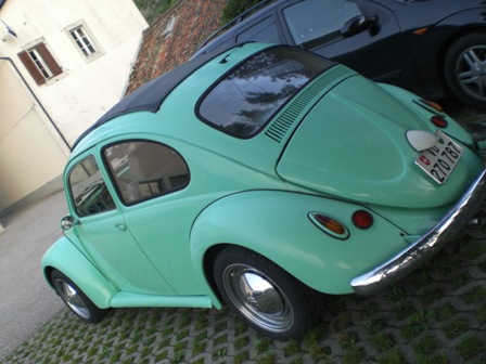A savoir qu'elle n'est pas d'origine( intérieur cuir gris/jaune, jantes Mangels, rétro california, capot et ailes polyester de chez Simili, pièces moteur chromées, radiateur d'huile suplémentaire sur le train avant, levier de vitesse Scat, freins à disque à l'avant)